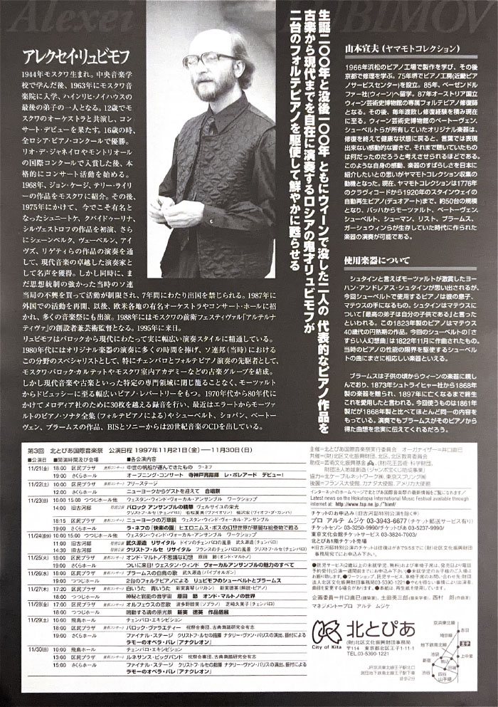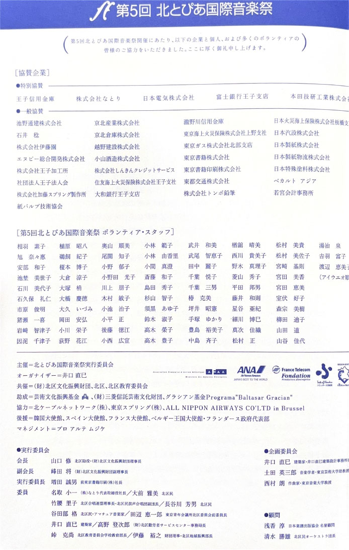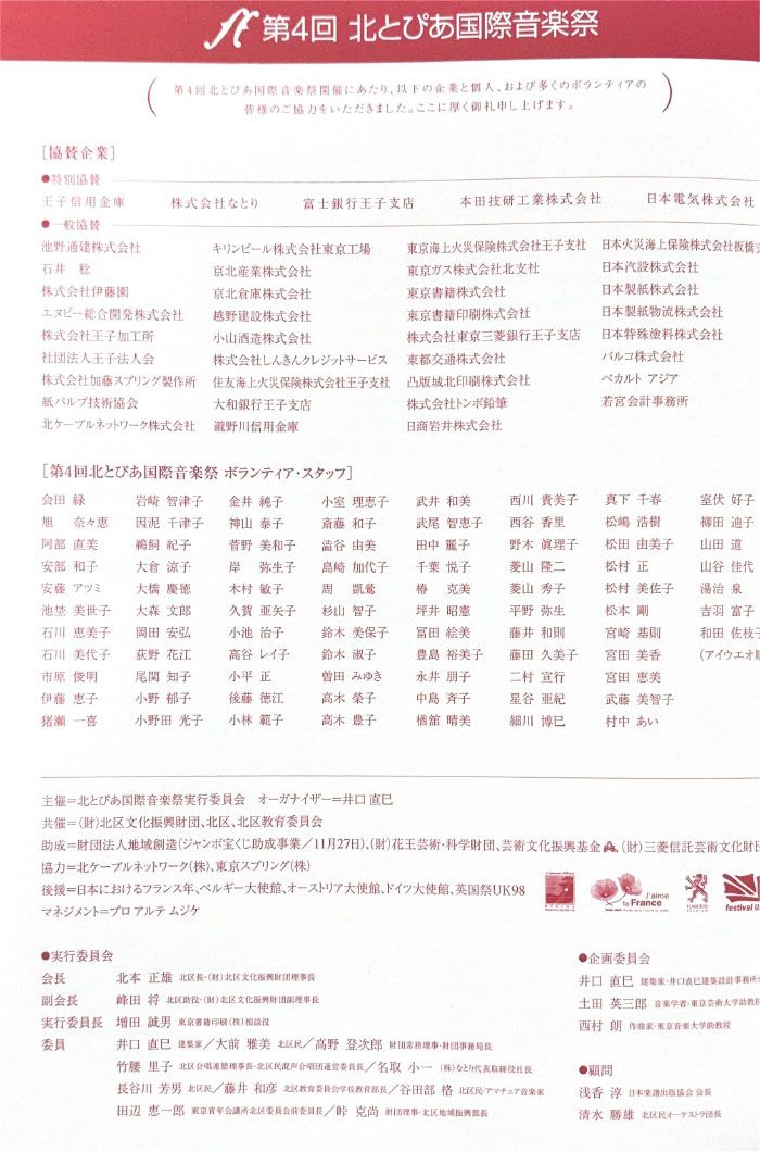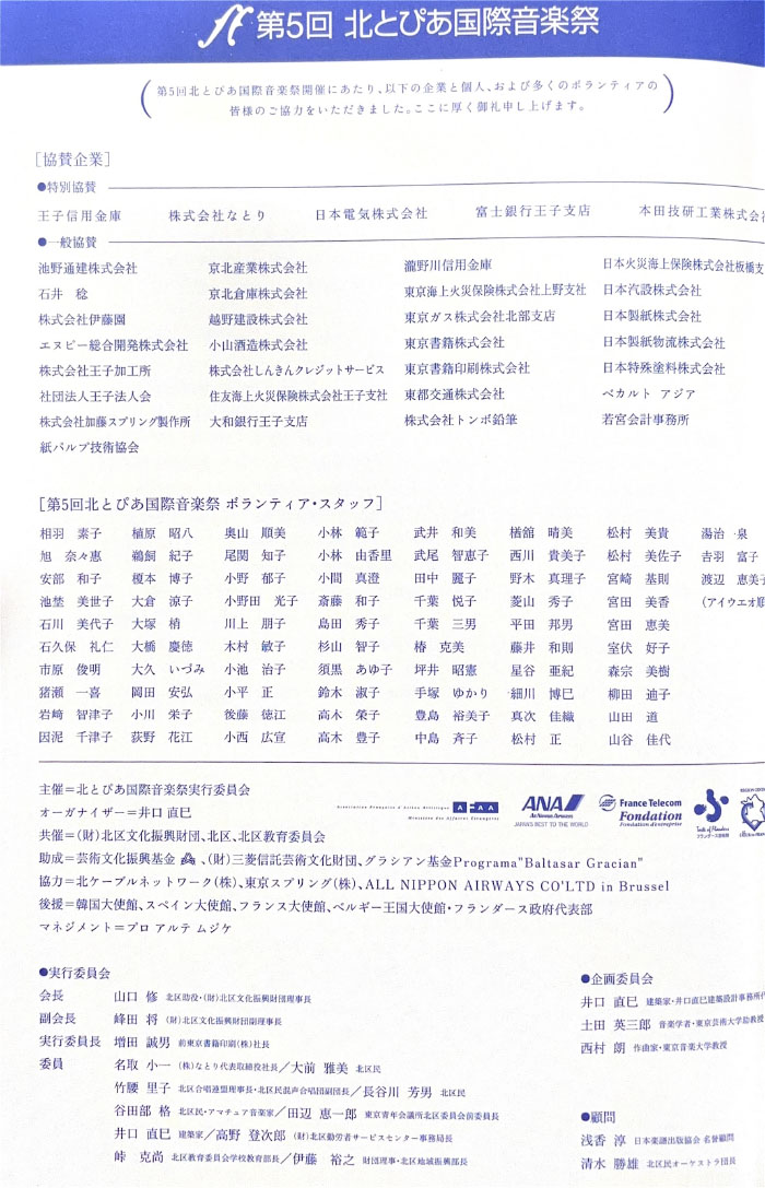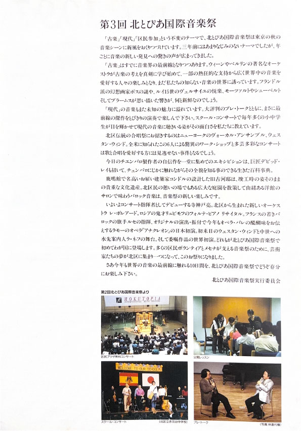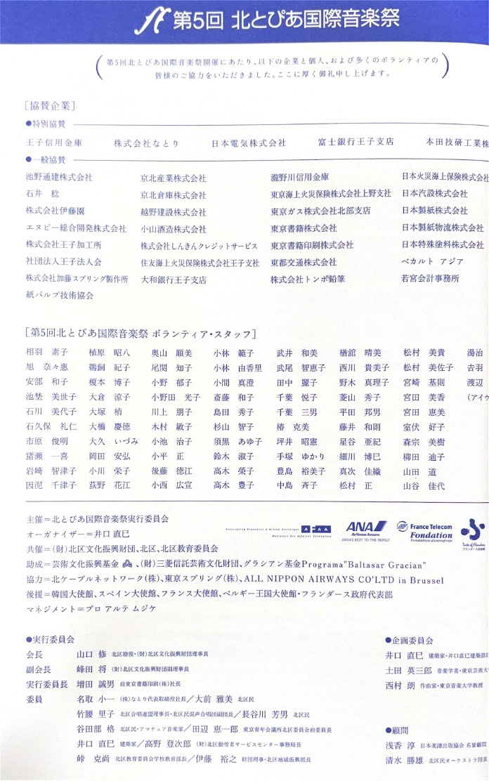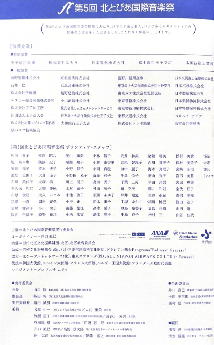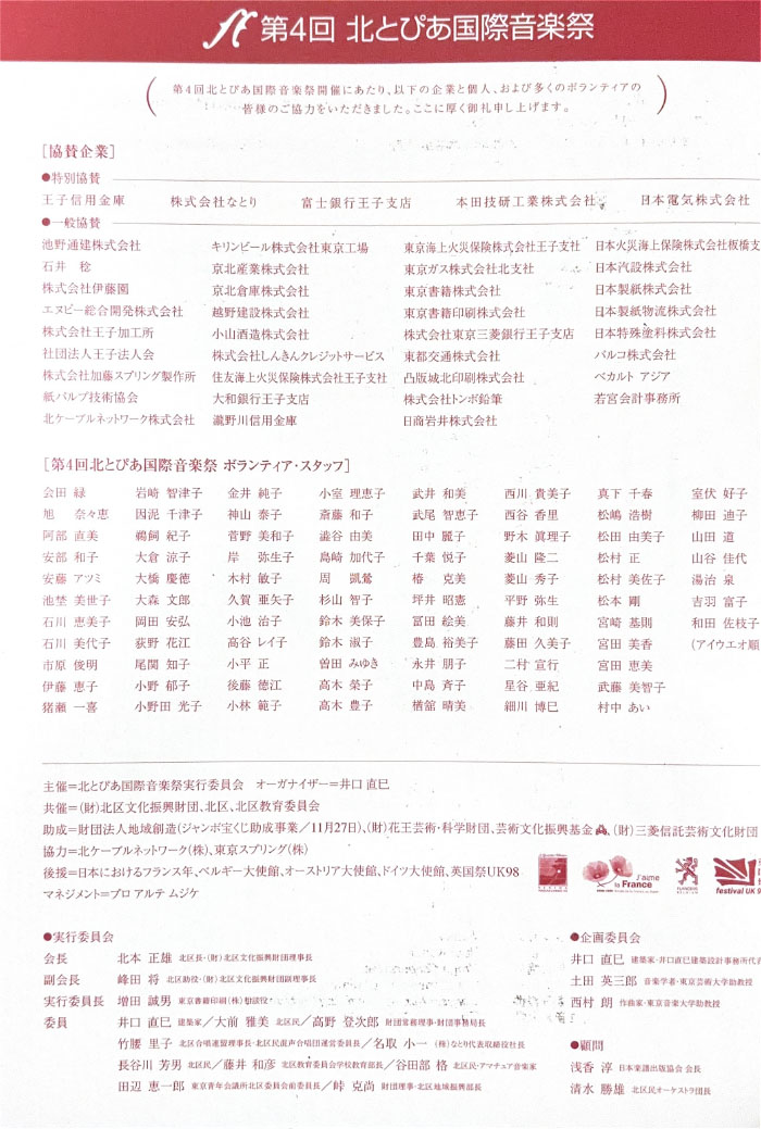 北とぴあ国際音楽祭 94’s〜99’s 投稿日: 2025年5月15日2025年12月31日 投稿者: abank プレ'94 プログラム Previous image Next image 公開プログラム Previous image Next image Lyric Previous image Next image 個別チラシ Previous image Next image 第1回 プログラム Previous image Next image 公開プログラム Previous image Next image 個別チラシ Previous image Next image 第2回 プログラム Previous image Next image 公開プログラム Previous image Next image 個別チラシ Previous image Next image 第3回 プログラム Previous image Next image 公開プログラム Previous image Next image 個別チラシ Previous image Next image 第4回 プログラム Previous image Next image 公開プログラム Previous image Next image 個別チラシ Previous image Next image 第5回 プログラム Previous image Next image 公開プログラム Previous image Next image 個別チラシ Previous image Next image