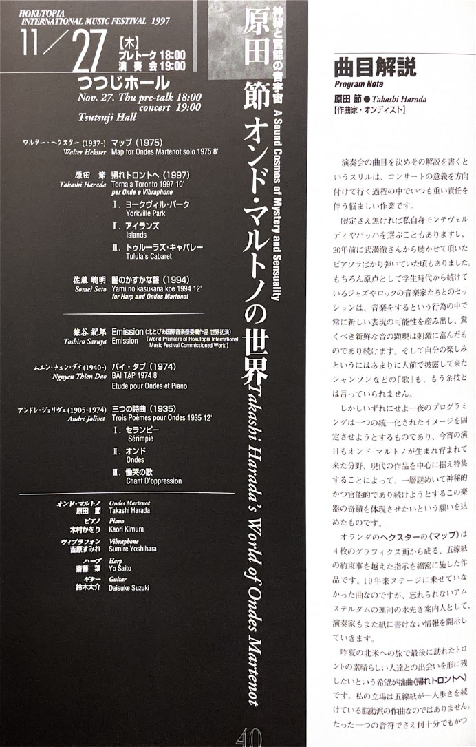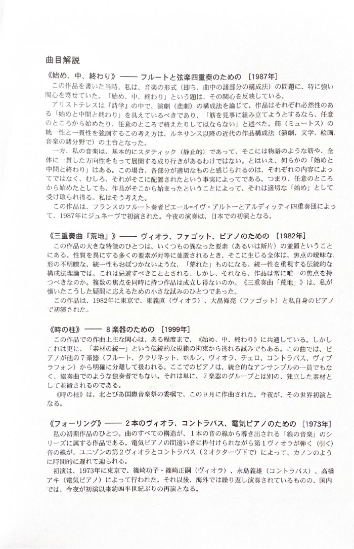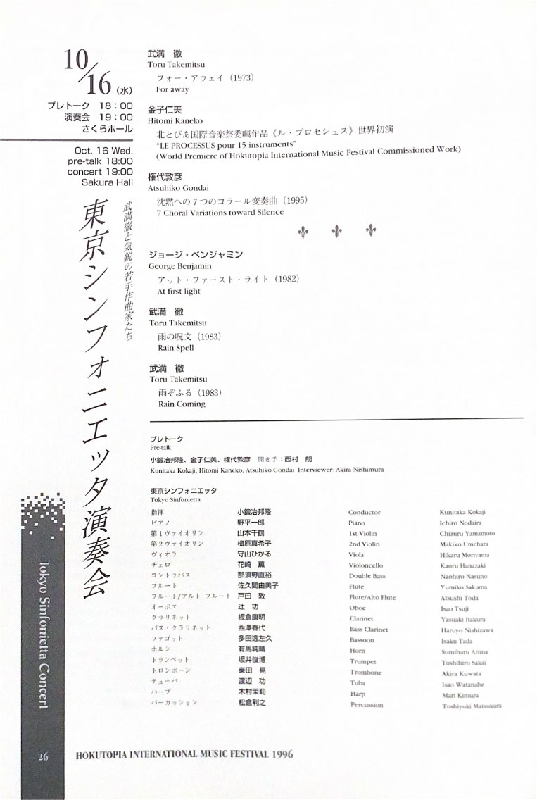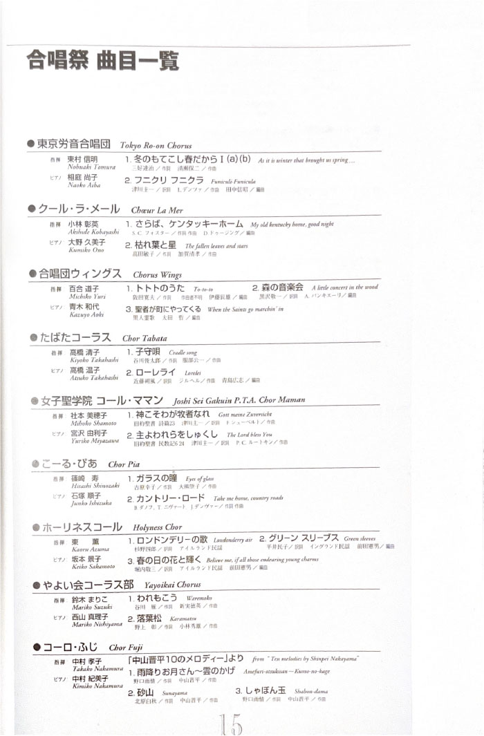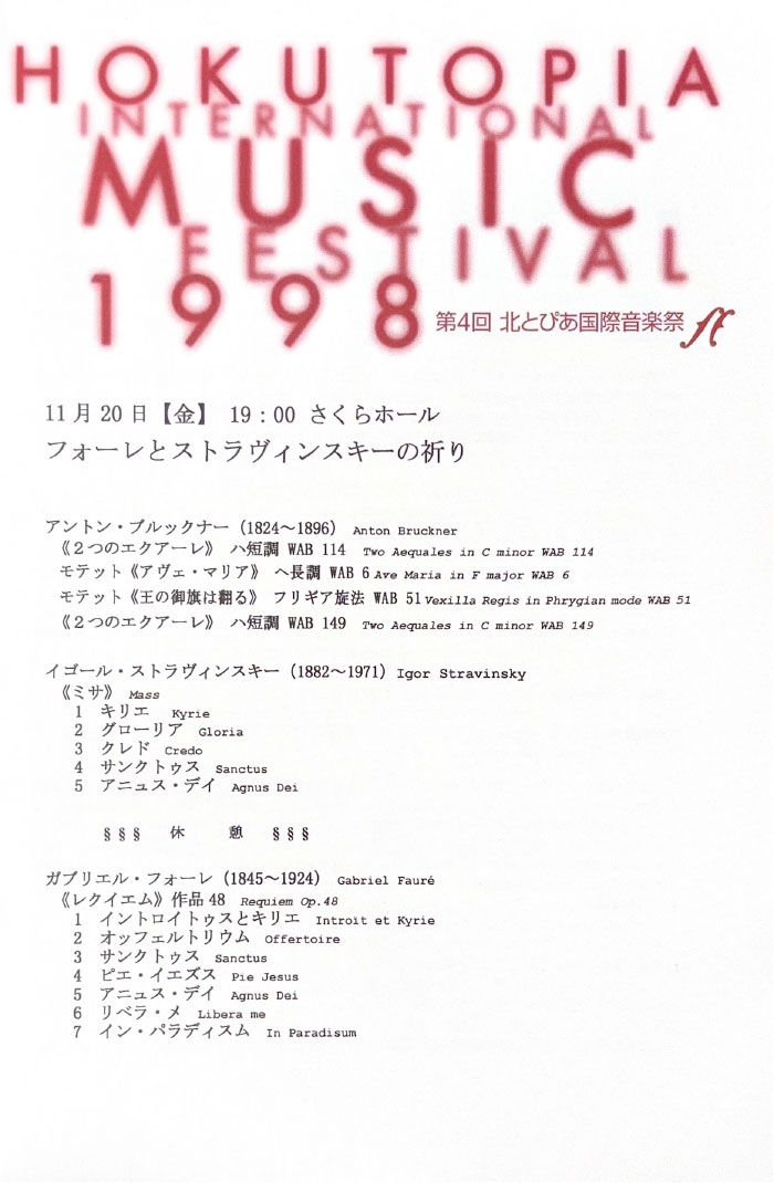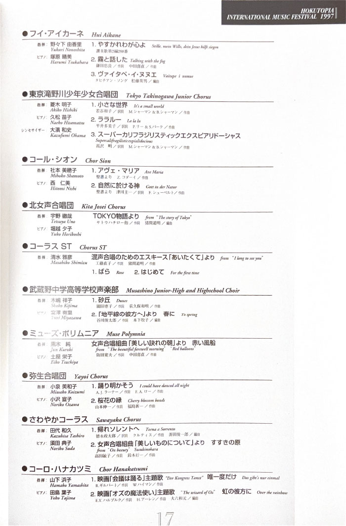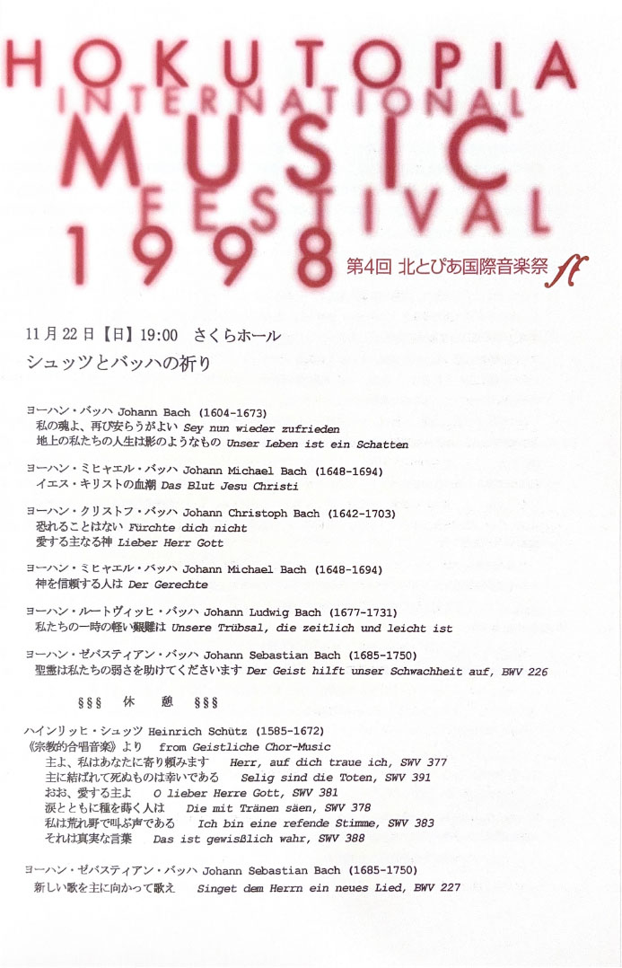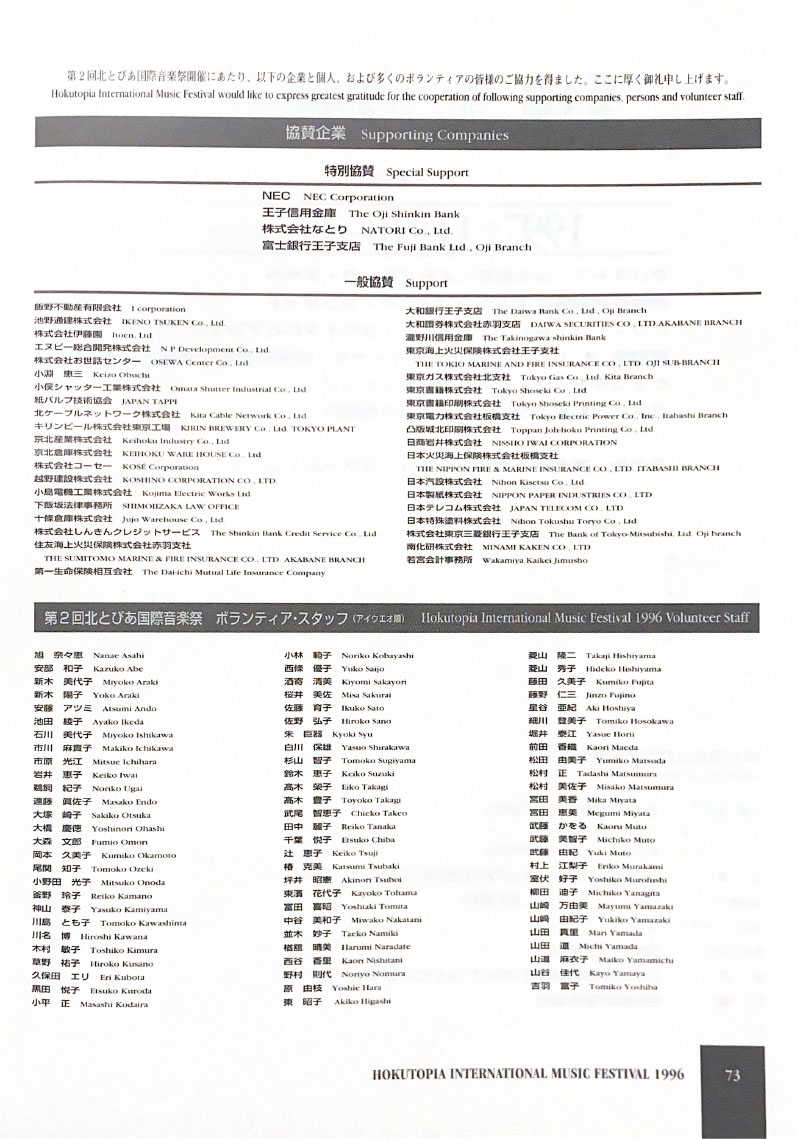北とぴあ国際音楽祭 94’s〜99’s 投稿日: 2025年5月15日2025年12月31日 投稿者: abank プレ'94 プログラム Previous image Next image 公開プログラム Previous image Next image Lyric Previous image Next image 個別チラシ Previous image Next image 第1回 プログラム Previous image Next image 公開プログラム Previous image Next image 個別チラシ Previous image Next image 第2回 プログラム Previous image Next image 公開プログラム Previous image Next image 個別チラシ Previous image Next image 第3回 プログラム Previous image Next image 公開プログラム Previous image Next image 個別チラシ Previous image Next image 第4回 プログラム Previous image Next image 公開プログラム Previous image Next image 個別チラシ Previous image Next image 第5回 プログラム Previous image Next image 公開プログラム Previous image Next image 個別チラシ Previous image Next image